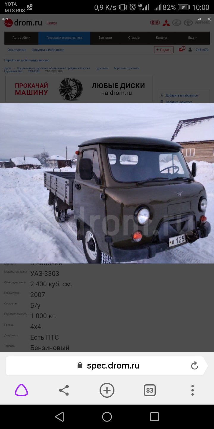 Груз : Уаз 3303 / 2007 г / 1 шт